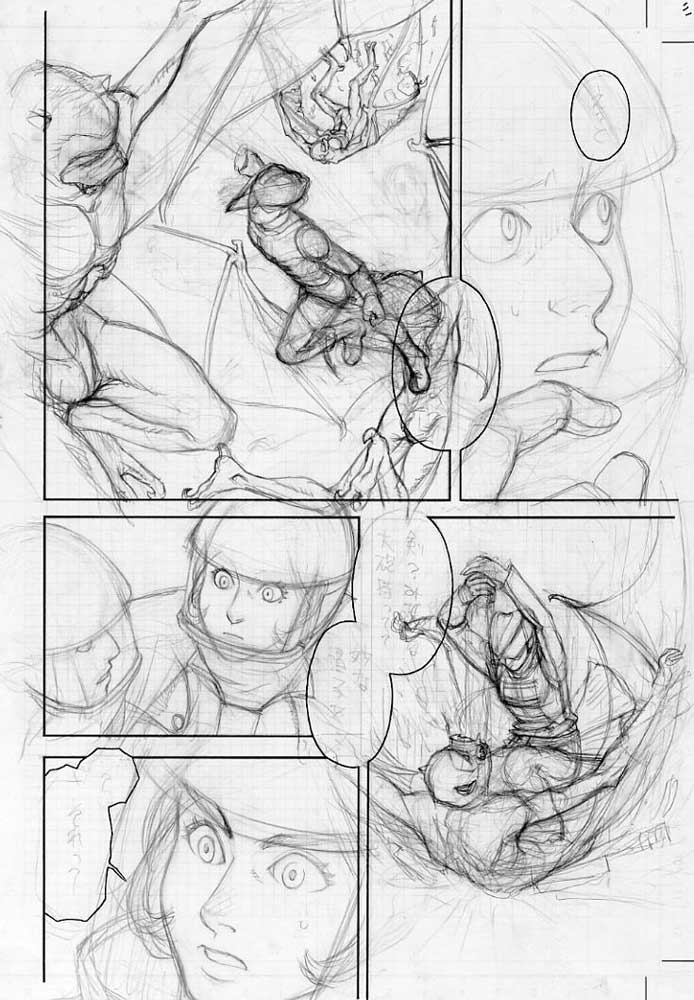 銃やエクスカリバーは主線ペン入れが終わってから背景と一緒に下描きです。