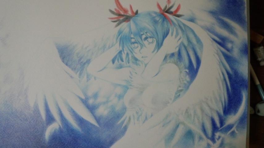 またもやお久し振りですこんばんは!私は元気です! 元気ですが相変わらず水張りとの戦いに全敗中で少々不貞腐れてます… なので今は久々に色鉛筆に浮気中です。 みっくみく!(途中) 画力よりも腕力が要る画材だ…